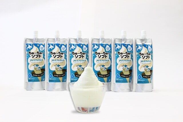 そのほかの原料には、スキムミルク、果糖、昆布酸(安定剤)など、すべて天然素材を使用し、北海道のソフトクリームの原料に初めてバターを入れた、新しい発想の濃厚で後味すっきりに仕上がりました。
