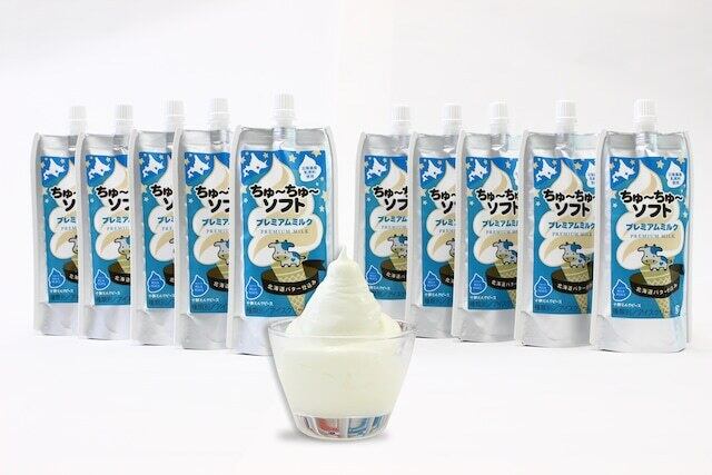 そのほかの原料には、スキムミルク、果糖、昆布酸(安定剤)など、すべて天然素材を使用し、北海道のソフトクリームの原料に初めてバターを入れた、新しい発想の濃厚で後味すっきりに仕上がりました。