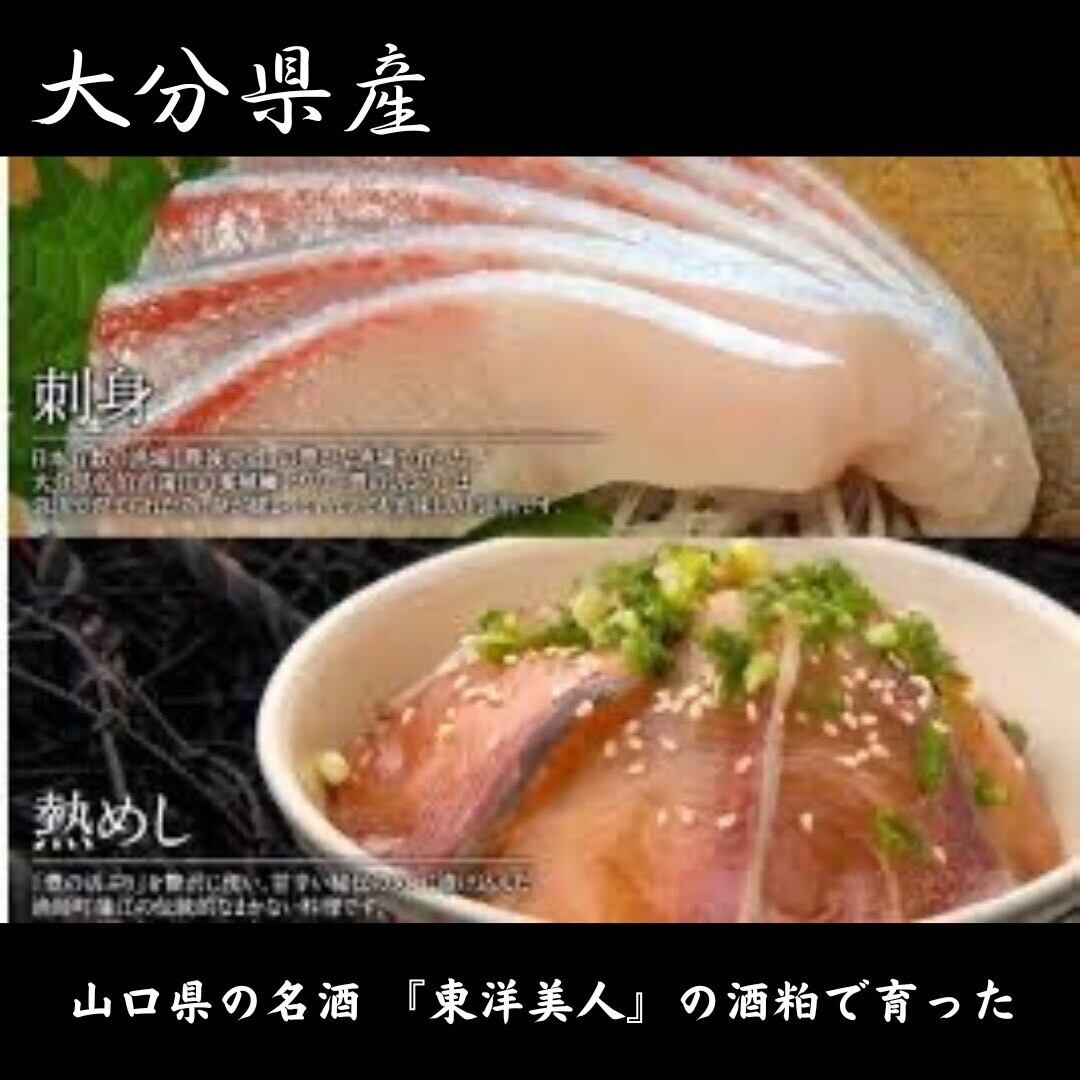 山口県の銘酒「東洋美人」の酒粕を、ブリの餌にコーティングして与え育てております。酒粕を与えた事によりブリ特有の生臭さがほとんど消え、更に旨味成分のグルタミン酸が通常の養殖ブリと比べて「約2倍」になった事がデータとして出ております。
